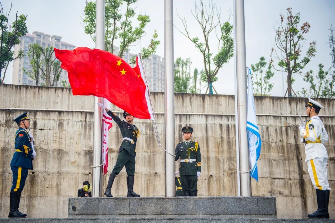 雄壮的国歌声,是对祖国的敬礼,更是即将展开军训生活的青春学子的庄严承诺。