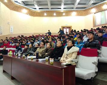 2014年12月20日早晨八点,大会在全院教师及学子的期盼中在逸夫小报告厅正式召开。大会分为“道德讲堂”、职业生涯规划讲座、考风考纪教育三个主题。在主持人张翊老师的带领下,全院师生欣赏了音乐《公民道德歌》,观看了好人故事《郑棒棒的故事》,令我们对诚实守信又有了更深层次的感悟;大会还安排了诵经典、发善心、吉祥语等环节。许猛堂博士的《职业生涯规划》演讲令人印象深刻,引经据典、分析深刻,得到了全院师生的热情掌声。会上,张开智教授作了有关《考风考纪》的讲座,张教授严肃又不失幽默的语言让学生们对《考风考纪》有了进一步的认识,学生纷纷表示将严格执行张教授教诲。