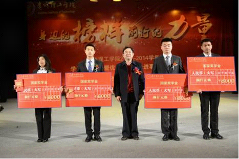 一等奖学金获得者我院化工131班同学王衍伟(右二)