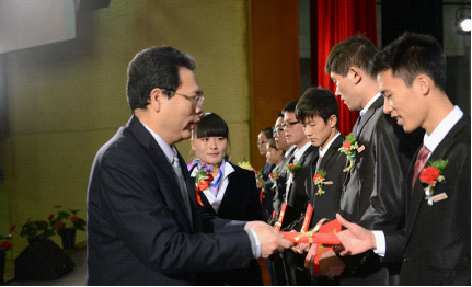 12月12日下午,伟德官网在逸夫大礼堂举行以“身边的榜样前行的力量”为主题的2013—2014学年学生表彰大会暨优秀大学生先进事迹报告会。我院学生丁三、王衍伟、刘浩达等获得国家奖学金、励志奖学金、校级奖学金以及优秀班干的同学获得表彰和奖励。