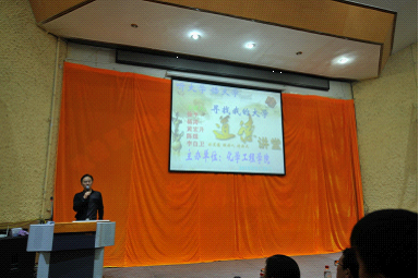 杨涛博士后围绕“我的大学”向在场的各位观众展示了他以前在大学里生活的点点滴滴,以其艰苦朴素的生活勉励同学们,要珍惜现在来之不易的生活,要学会满足;徐平书记给同学介绍了化学工程学院的发展历史和前景,为同学们将来的道路指明了方向;随后,陈煜博士以其幽默风趣的话题带动了全场的氛围,同学们的激情再一次被点燃!最后她给了同学们几点建议:第一,要学会自主学习,锻炼自己;第二,要学会理性地看待问题,一定要把握住机会;黄宏升博士的讲话把本次的讲座推向了高潮,他把同学们所学的专业与社会生活联系起来,建议同学们建立新的兴趣爱好并教导怎样才能快速融入一个新的社会。最后,李自卫博士给同学们做了总结,希望同学们在学校平安和快乐地渡过大学四年。