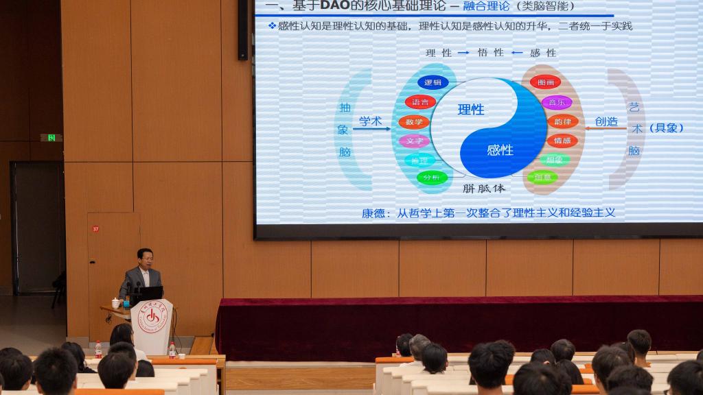 唐立新院士以“智能工业数据解析与优化”为题,深入剖析了数据在工业生产中的核心价值,展望了运筹学在智能制造中的广阔应用前景。他从数据解析与系统优化的定义、方法及应用三个维度展开阐述,依托DAO的核心理论,通过赫伯特·西蒙和克劳德·香农的实例,以及人工智能学科结构的阐述,引领同学们进入更深层次的理解。他强调,系统优化不仅是智能制造管理决策与工业智能的基石,更是数据解析的驱动力与核心。