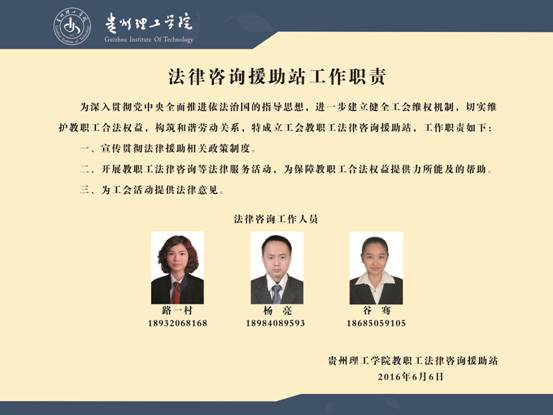 伟德国际victor1946教职工法律咨询援助站是由校工会和马列主义教学部共同发起成立的公益性法律咨询援助组织,主要成员为学校具有法律资质、法律专业背景的教师,主要服务对象为学校教职工。马列主义教学部负责援助站日常管理工作,将通过面对面、电话来访、网络在线解答等多种方式,为广大教职工提供法律咨询、法案调解等力所能及的法律服务;通过普法宣传来提升教职工法律意识;针对经济困难或者遇到特殊案件的教职工提供法律援助。
