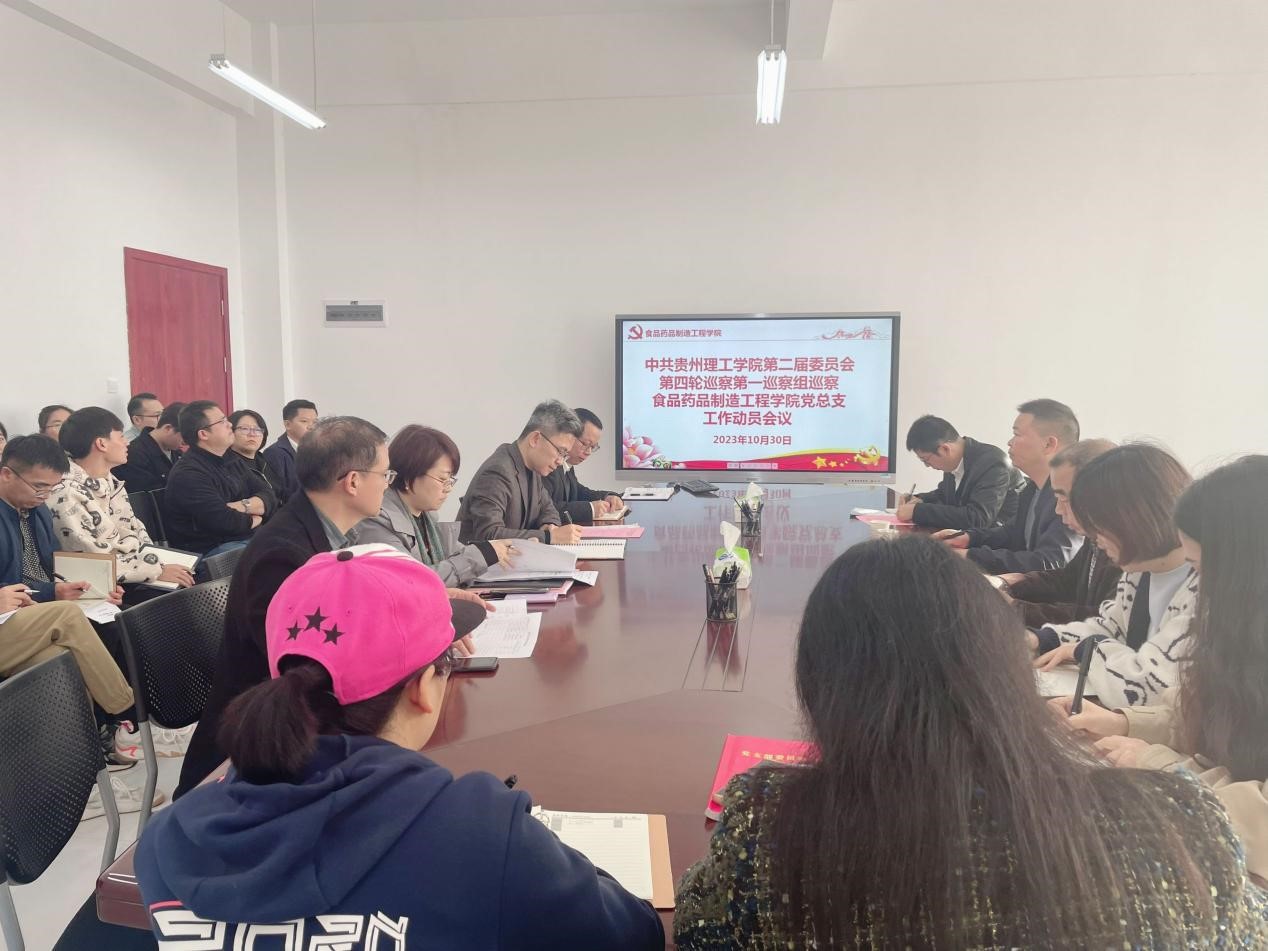 (本网讯 谢述琼)根据伟德国际victor1946党委关于巡察工作的统一部署,巡察食品药品制造工程学院党总支工作动员会于2023年10月30日下午召开。动员会前,第一巡察组与食品药品制造工程学院党政负责人召开见面沟通会,学习了习近平总书记关于巡视工作的重要论述和中央、省委有关巡察工作精神并传达学校党委关于本轮巡察的相关工作要求。动员会上,副组长王忠奎传达了巡察相关通知要求,第一巡察组组长杨鉴福进行巡察工作动员讲话,食品药品制造工程学院党总支书记黄名正作表态发言。