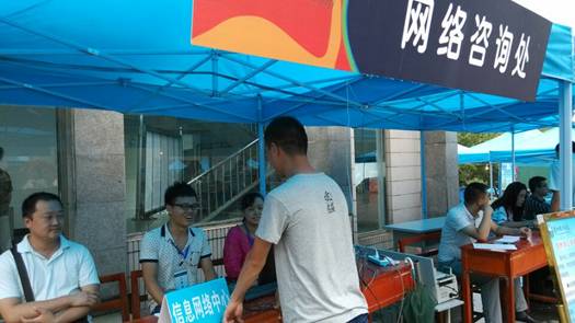 为了积极响应学校号召,迎接2014级新生入学报到,信息网络中心于9月3日就提前进行迎新现场光纤网络的布置工作,9月4日下午现场网络全部布置完成。9月5日是新生报到的第一天,为了让学生能够及时了解在校上网情况,我中心特别定制了《伟德国际victor1946校园网学生用户使用指南》,并在迎新现场安排专人随时处理突发的网络故障,在迎新现场设立的网络咨询处,解答学生及家长关于校园网方面的疑问。